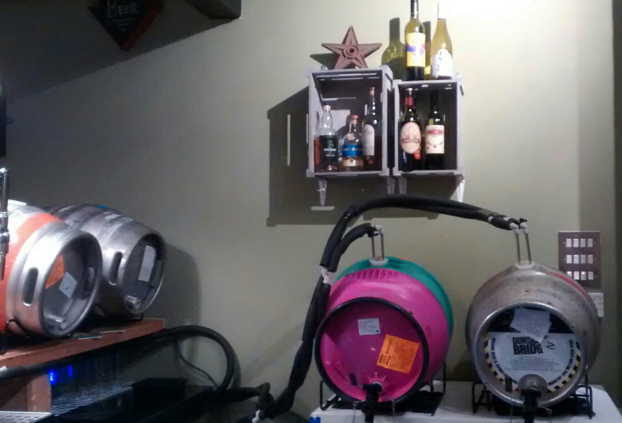 After we’ve made our next million, we just might dig a hole for a cellar. At the moment we have room for four firkins and one pin on cask cradles which keep them at a tilt atop our bar and a sturdy set of shelves. It means everything is on view including the cooling coils, which attracts quite a few comments (‘a little Heath Robinson’ is one remark which caught my eye in a recent TripAdvisor review).